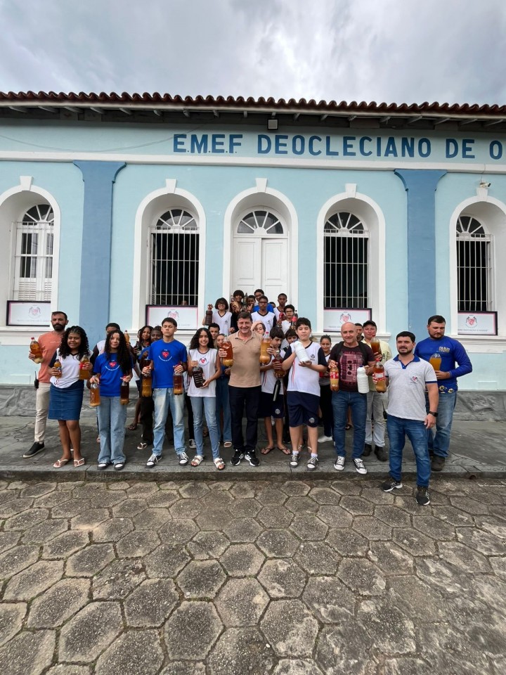 PROJETO AMBIENTAL "TROCA SUSTENTÁVEL" RECOLHE 167 LITROS DE ÓLEO DE COZINHA NA ESCOLA DEOCLECIANO DE OLIVEIRA