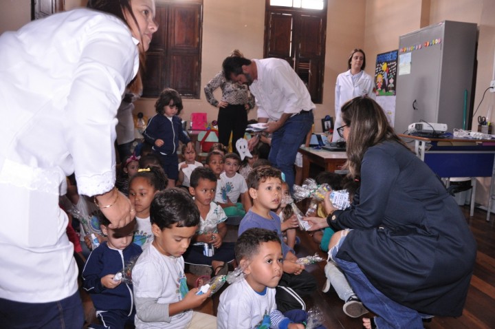 Na ação realizada na manhã desta quarta-feira, participaram as dentistas Camila Nasser, Julia Emery e Julia de Paula. Além das atividades nas creches, a equipe também tem feito visita às demais escolas municipais e realizado o Saúde Bucal Itinerante, percorrendo as unidades da Estratégia Saúde da Família (ESF) do município.