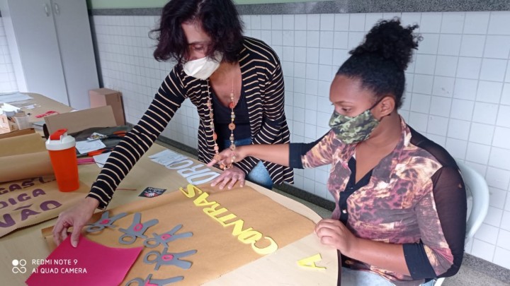 Os adolescentes também confeccionaram cartazes que foram expostos na sede do CRAS com o objetivo de conscientizar os assistidos pela Assistência Social.