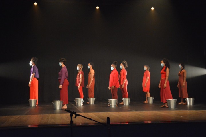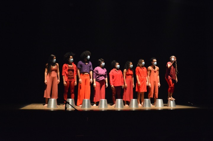 E o primeiro grupo a se apresentar no 21° Festival Nacional de Teatro de Guaçuí foi o Coletivo Emaranhado, com o espetáculo Abajur cor de carne.