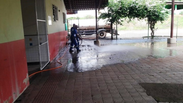 E por sua vez, as equipes da Secretaria Municipal de Obras, Infraestrutura e Serviços Públicos (Semoisp), está realizando a limpeza de instalações das escolas municipais. Pátios e quadras, principalmente, estão sendo lavados, com a utilização do caminhão pipa, para que os alunos encontrem as instituições prontas para o início de todas as atividades.