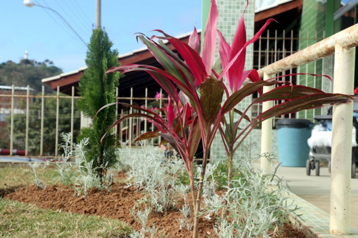 Os canteiros da Policlínica foram totalmente revitalizados pela equipe de Jardinagem da Semmam.