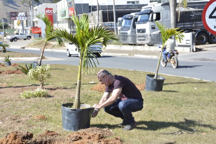 Deu início na manhã desta sexta-feira (08) pela Secretaria Municipal de Meio Ambiente (Semmam), o trabalho de nova ornamentação dos canteiros que compõem os trevos principais na entrada da cidade. No trevo próximo à Colagua, foram plantadas 10 (dez) Palmeiras Veitchia (Veitchia merrillii) e 11 (onze) Sagu-de-jardim (Cycas revoluta).