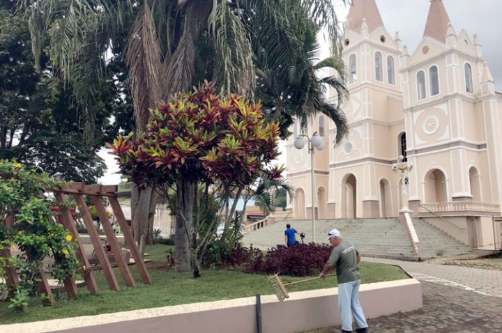 Os serviços de manutenção começaram pelos canteiros da Praça da Matriz, com o cronograma sofrendo modificações por causa das chuvas.