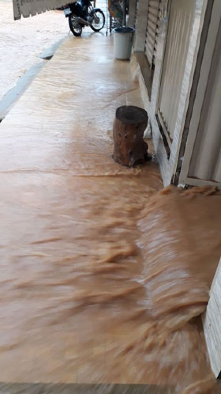 Uma forte chuva causou transtornos e prejuízos no distrito, onde casas e comércio foram invadidos pela água, mas não há desalojados