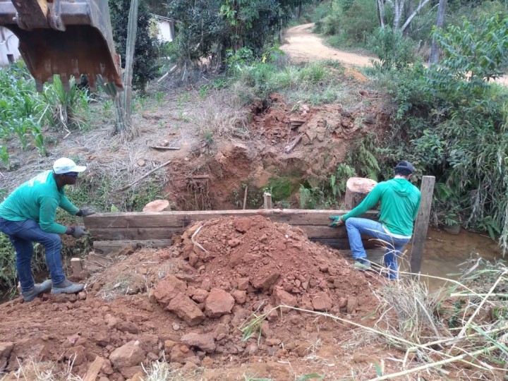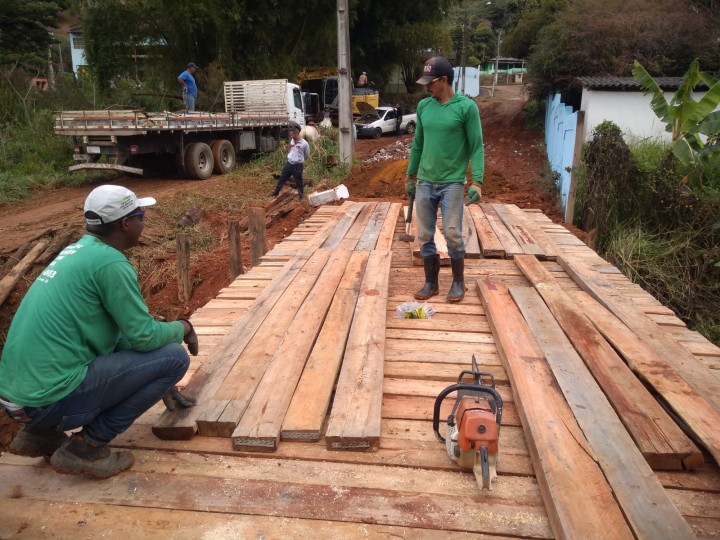 Mesmo com chuva, entre os dias 30/08 e 03/09 a equipe da Secretaria de Agricultura não mediu esforços para realizar a entrega de mais uma ponte. A obra que contou com reforço de vigas de madeira e a troca de todo o assoalho, beneficiou a Comunidade São Miguel do Caparaó e Assentamento Luiz Taliuly Neto.