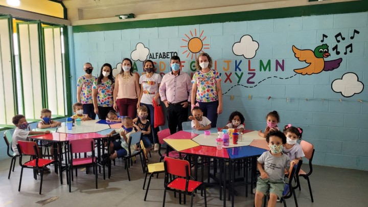 No CEMEI Rita Perdigão foram entregues cadeira giratória, computadores, geladeira, fogão e conjunto de mesas circulares infantil adquiridas meio da Emenda Impositiva destinada pelo ex-vereador José Luiz Pirovani.