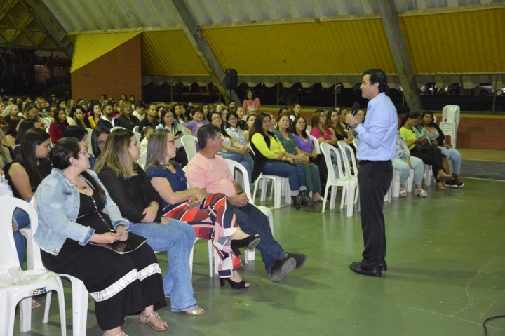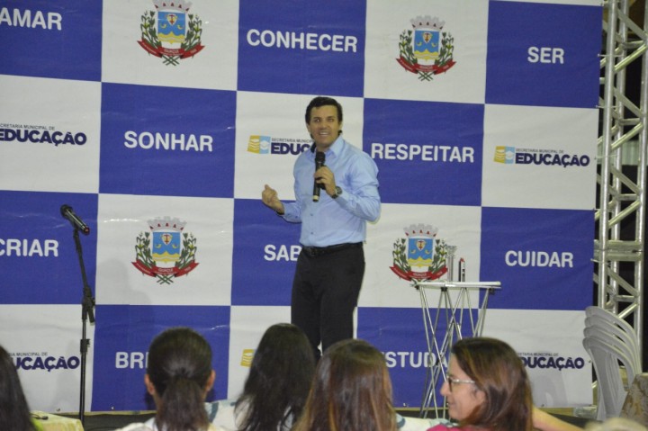 A Secretaria Municipal de Educação realizou na noite da última quarta-feira (26) um momento em comemoração ao Dia do Professor e Dia do Servidor Público. O evento reuniu mais de 300 pessoas entre professores, gestores, e equipe de apoio das escolas e administrativa da SEME para uma palestra motivacional com o palestrante Dalmir Sant’Anna.