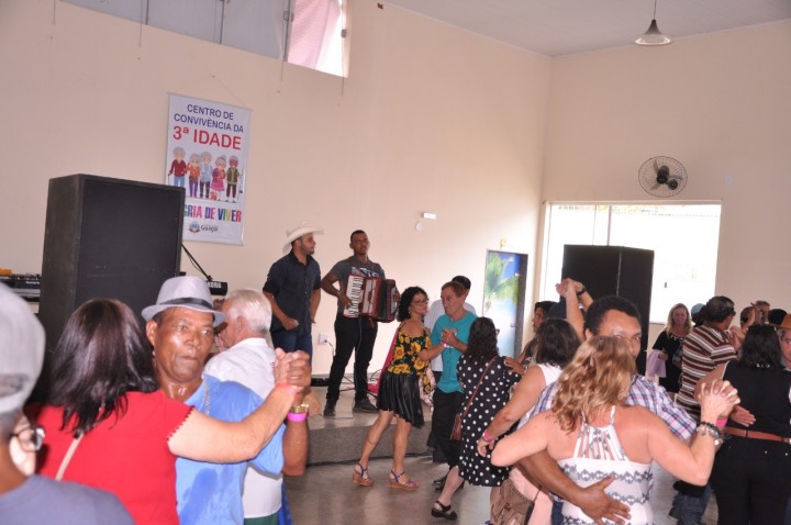 O grande salão do Centro de Convivência ficou lotado durante todo o dia, com o pessoal mostrando muita disposição para dançar. (Divulgação PMG)