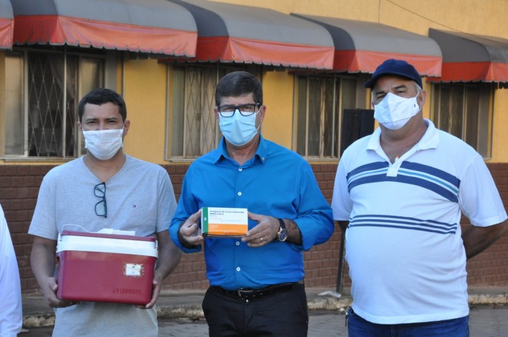 O prefeito Marcos Luiz Jauhar, o secretário de Saúde, Werton dos Santos Cardoso, e o vereador Julinho Tererê acompanharam a vacinação.