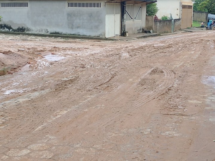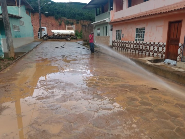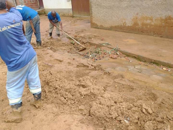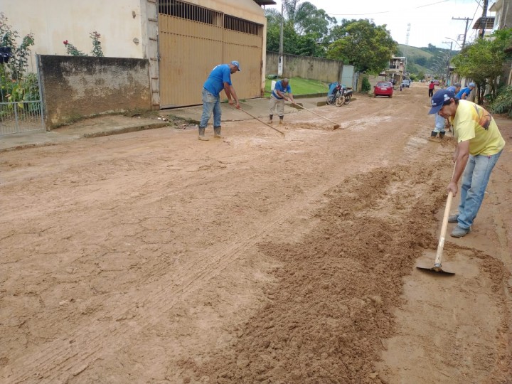 Um grupo de servidores da Secretaria de Obras está realizando a limpeza das ruas de São Pedro de Rates que ficaram tomadas de lama.