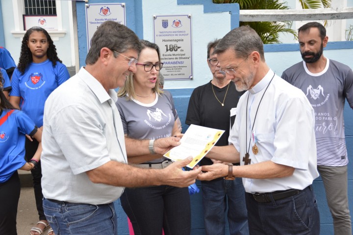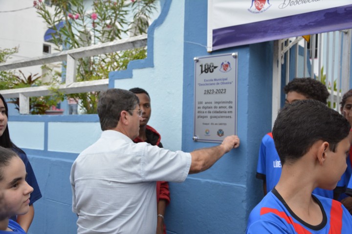 A ocasião também foi marcada pelo reconhecimento do centenário da escola. Para comemorar esse marco histórico, foram descerradas placas comemorativas que relembram a longa trajetória da escola na educação de gerações de estudantes. Fundada em 1923 a Escola Municipal "Deocleciano de Oliveira" desempenhou um papel fundamental na formação educacional e moral de muitos cidadãos de Guaçuí ao longo de sua história centenária. A escola é conhecida por seu compromisso com a excelência acadêmica e por promover valores que contribuem para o desenvolvimento integral de seus alunos.