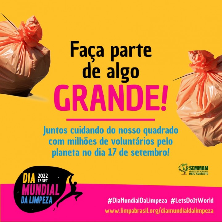 O Dia Mundial da Limpeza é um movimento cívico que une 191 países e milhões de pessoas em todo o mundo para limpar o planeta. Em um único dia! No dia 17 de setembro de 2022, o Dia Mundial da Limpeza acontecerá pela 5ª vez.