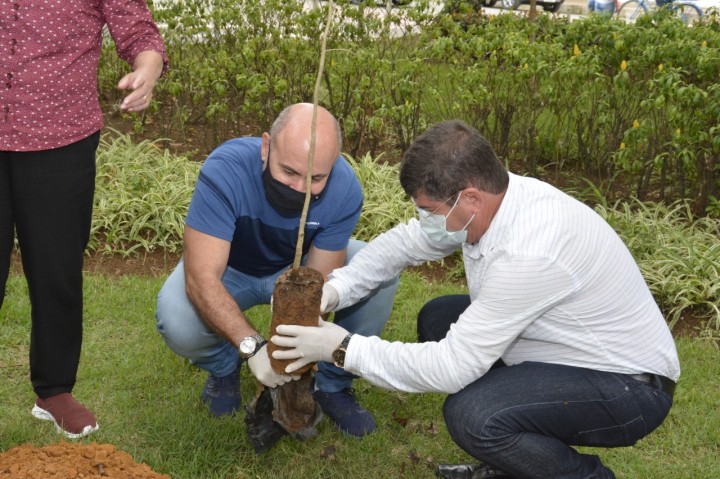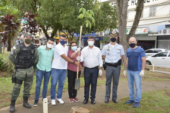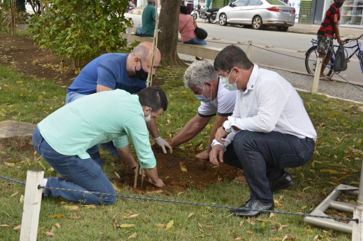 A ação aconteceu em dois momentos: no gabinete do prefeito e na Praça João Acacinho por meio de plantio de árvores.