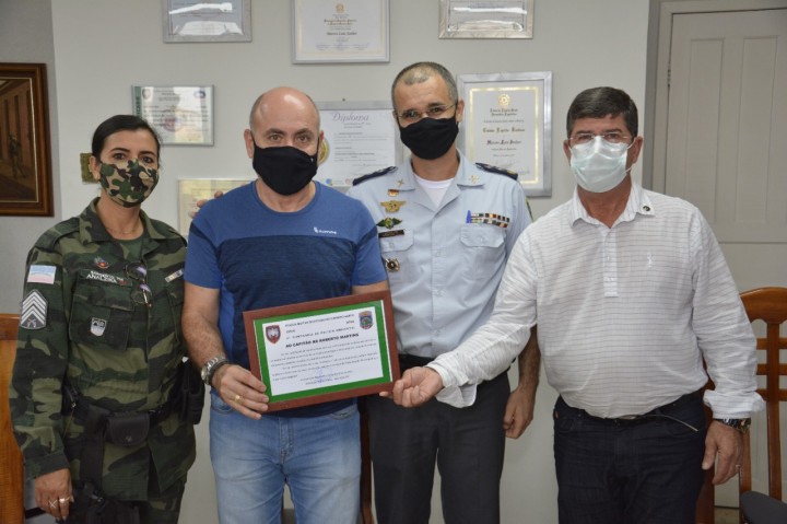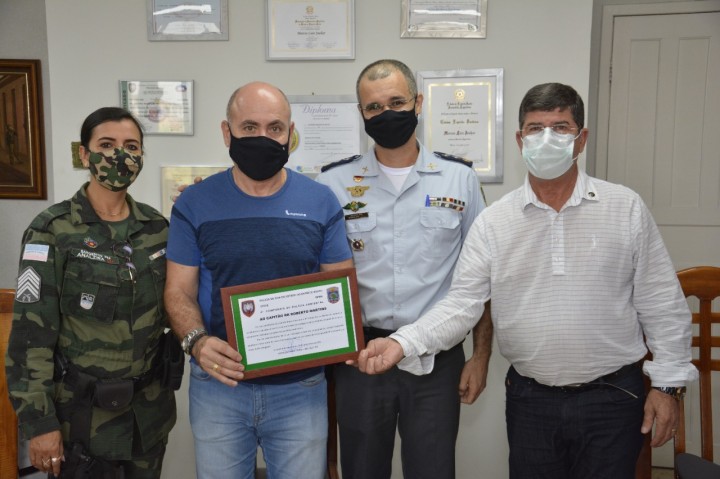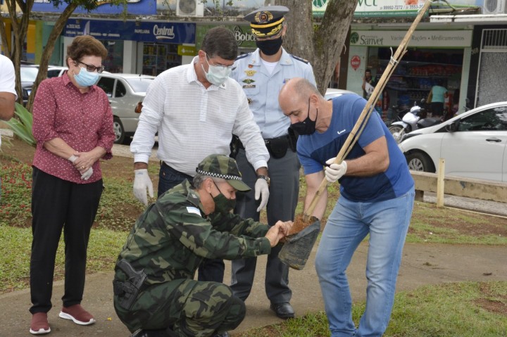 Antes do plantio houve uma reunião no gabinete do prefeito onde o major Reinaldo Faria Vieira juntamente com os policiais ambientais, prestaram uma homenagem ao secretário de Meio Ambiente Roberto Martins que é capitão da reserva e prestou serviços junto ao Batalhão de Polícia Militar Ambiental. "A data é propícia para esta justa homenagem, porque o capitão Martins prestou relevantes serviços no BPMA fazendo a diferença por onde sempre passou, deixando um importante legado não só ao Batalhão Ambiental como certamente agora à frente da secretaria de Meio Ambiente", destacou o major que trabalhou por anos com Martins e agora se despede daquela unidade de polícia após sua promoção ao novo posto.