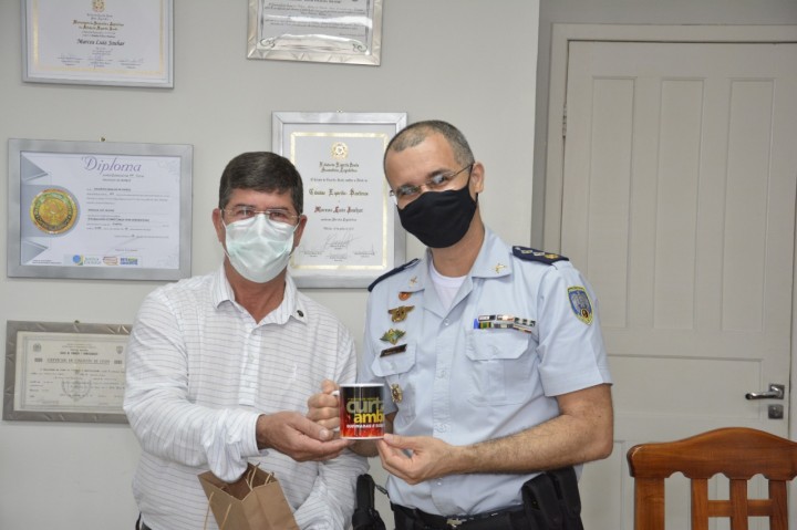 Na oportunidade, o prefeito Jauhar ofereceu um mimo aos policiais visitantes e enalteceu a parceria entre a secretaria de Meio Ambiente e o Batalhão de Polícia Militar Ambiental.
