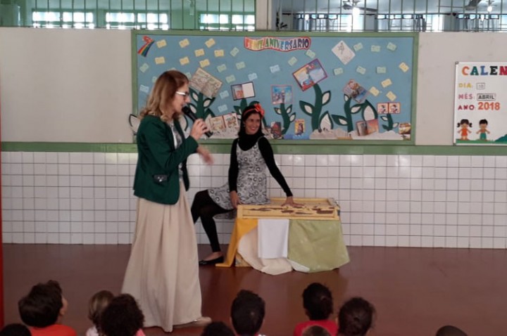 Durante as atividades, uma turma do Jardim de Infância cantou uma paródia sobre a leitura, composta pela professora Leia Costa, da Rede Municipal. “Cada apresentação teve o objetivo de despertar nas crianças o prazer e a curiosidade de viajar no mundo dos livros”, destaca a diretora. “A leitura faz com que o ser humano, desde sua tenra idade, obtenha, nos livros, o desenvolvimento da imaginação, o conhecimento de mundo, a criatividade, e viaja sem sair do lugar”, conclui.
