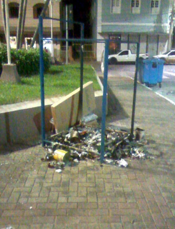 E a preocupação do secretário procede. Na madrugada da quarta-feira de cinzas (14), dois Pontos de Entrega Voluntária (PEVs), localizados na Praça da Matriz e na Rua Tenente Arnaldo Tulio, foram queimados e totalmente destruídos, e o vandalismo foi imediatamente comunicado à Semmam por populares. Por sua vez, a Secretaria registrou uma queixa crime junto à Delegacia de Polícia Civil do município e espera que, por meio de câmeras de vigilância e denúncias anônimas (tel. 181), seja possível identificar o responsável ou responsáveis pelo crime.