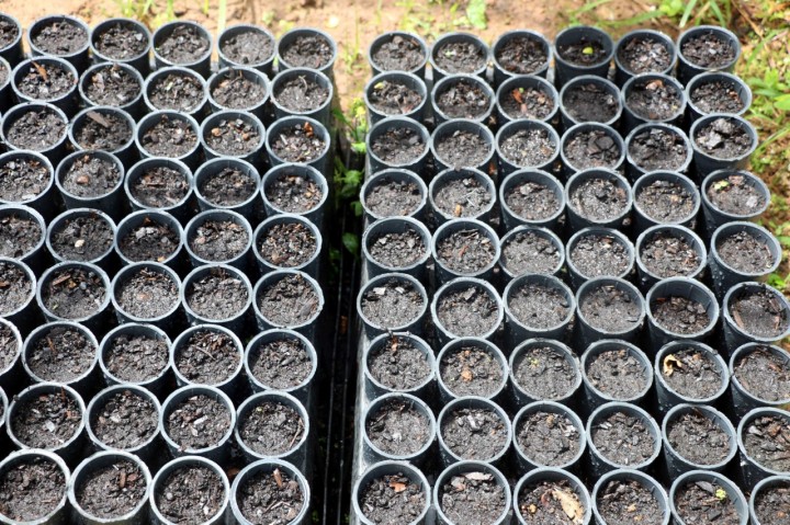 As mudas de espirradeiras foram plantadas em tubetes e as mudas, após germinação, serão levadas para o bairro e cultivadas pelos próprios moradores. (Divulgação Semmam)
