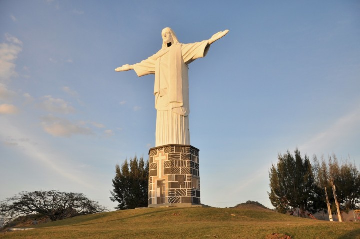 O Cristo Redentor e toda a estrutura existente no local receberam nova pintura em serviço realizado numa parceria entre município e iniciativa privada. (Divulgação PMG)