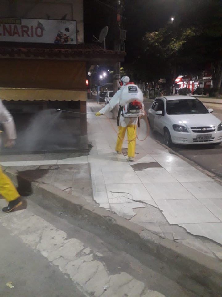 A desinfecção das ruas é realizada à noite, depois que o comércio fecha. (Comunicação Guaçuí)