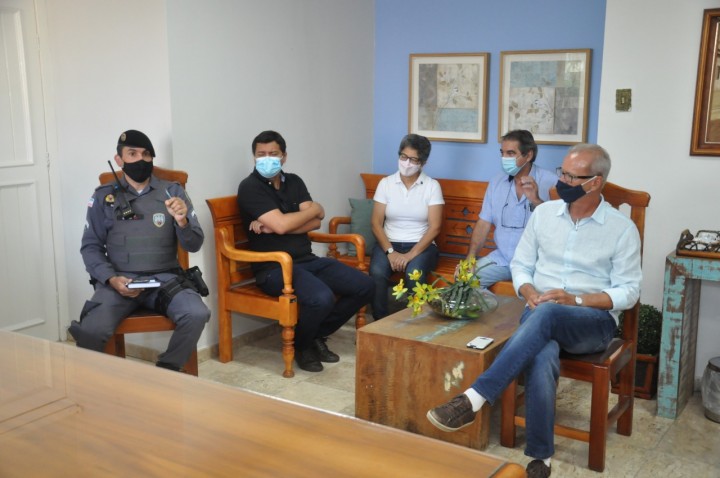 As ações de combate a pandemia do novo coronavírus continuam. Na manhã desta segunda-feira (11), o prefeito Marcos Luiz Jauhar se reuniu com a Polícia Militar, lideranças religiosas e associação comercial, para traçar novas estratégias de enfrentamento.