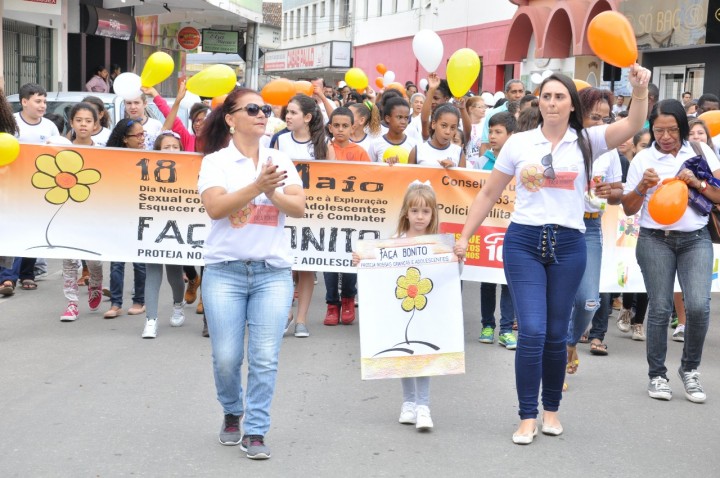 O Centro de Referência de Assistência Social (Creas) e o Conselho Tutelar de Guaçuí realizaram, na manhã desta sexta-feira (18), o dia do “Faça bonito”, que começou com uma passeata pela Avenida Marechal Floriano e instalou estandes e cartazes da campanha de combate ao abuso e violência sexual contra crianças e adolescentes, durante todo o dia, na Praça João Acacinho. Os dois órgão contaram com o apoio do Centro de Referência de Assistência Social (Cras) – também ligado à Secretaria Municipal de Assistência Social, como o Creas –, Secretaria Municipal de Cultura, Turismo e Esportes, Secretaria Municipal de Saúde, Terceira Idade Alegria de Viver e Apae, além da participação de todas as escolas do município.