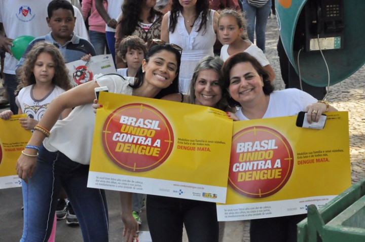 Centenas de pessoas participaram da ação de mobilização, entre crianças, jovens e adultos, inclusive pessoas da Terceira Idade, portando cartazes e banners. Entre eles, um servidor da Vigilância estava fantasiado de mosquito da dengue, tendo ao seu lado outro servidor vestido com a roupa de proteção individual (PI) e bomba costal, simulando matar o mosquito.