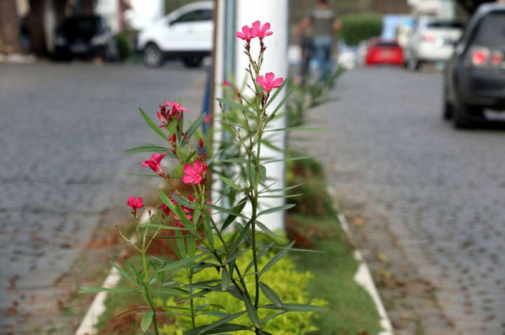 Foram plantadas 66 espirradeiras ao longo da Avenida Espírito Santo e Semmam espera que comerciantes adotem as plantas.