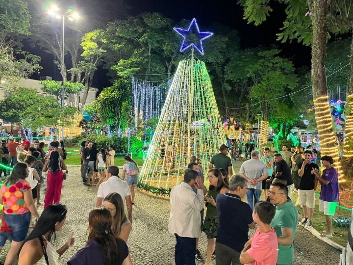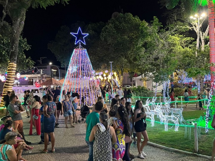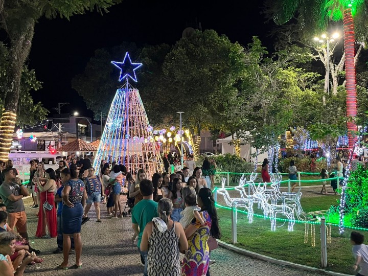 Desde o início do mês, equipes das Secretarias de Cultura, Turismo e Esportes, Obras, e Meio Ambiente, trabalharam para decorar a Praça João Acacinho com uma deslumbrante exibição de enfeites natalinos. As árvores foram adornadas com centenas de luzes cintilantes, criando uma atmosfera acolhedora e festiva para todos que passam pelo local.