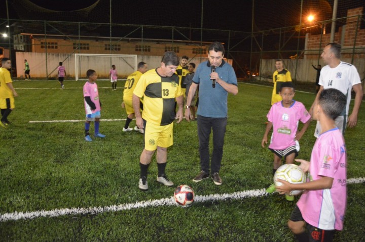 A solenidade aconteceu no Campo Bom de Bola II e contou com a participação de secretários municipais, servidores, vereadores, alunos da escolinha de futebol e sociedade civil.
