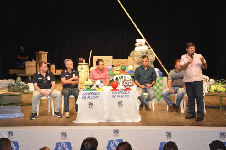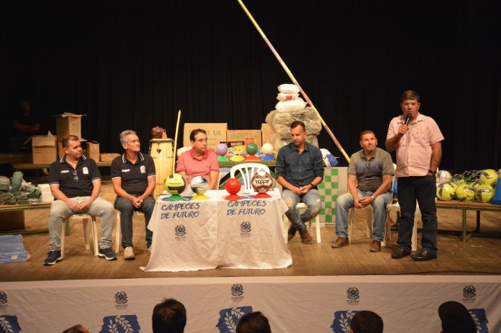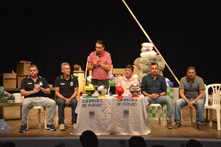 Nesta terça-feira (26), a Prefeitura Municipal de Guaçuí, por meio da Secretaria de Cultura, Turismo e Esporte recebeu da Secretaria de Esporte e Lazer (SESPORT) kits para os alunos do Projeto Campeões de Futuro. O material foi entregue durante solenidade realizada no Teatro Municipal Fernando Torres.