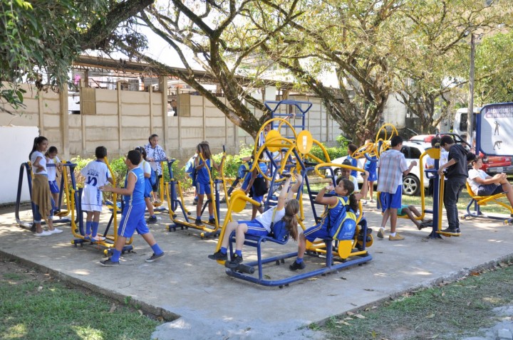 As crianças e adolescentes que participam do programa nos municípios e instrutores participaram de atividades no encontro realizado em Guaçuí