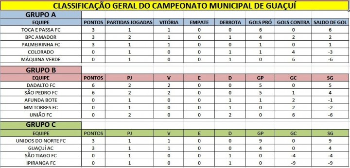 O Campeonato Municipal de Futebol de Guaçuí segue com jogos sendo realizados nas noites de quinta-feira e nas manhãs e tardes de domingo, sempre no Estádio Municipal Francisco Lacerda de Aguiar. A quinta-feira passada (22) marcou a estreia do Colorado – que havia folgado na primeira rodada – que foi derrotado pelo BPC Amador, por 4 a 1, na chave A. Já na chave B, a estreia do Afunda Bote também não foi boa, com a derrota para a equipe de São Pedro, por 2 a 1, no domingo (25), mesmo dia que aconteceu a segunda vitória do time da Dadalto, por 3 a 0, sobre o União.
