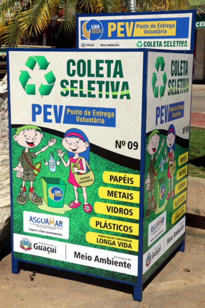 Novos três Pontos de Entrega Voluntária (PEVs) foram instalados na tarde desta quarta-feira (28) em pontos estratégicos de Guaçuí para receber a coleta seletiva de lixo dos moradores da cidade. Com estes, já são 10 novos PEVs instalados que estão substituindo os antigos, feitos de uma armação de metal envolvida por um tipo de lona, o que os fazem ser mais vulneráveis à ação de vândalos.