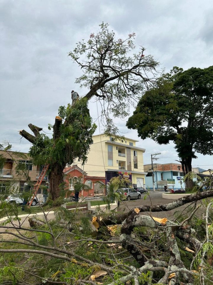 SECRETARIA DE MEIO AMBIENTE REMOVE ÁRVORE COM EXTREMO RISCO DE QUEDA NA PRAÇA DA MATRIZ