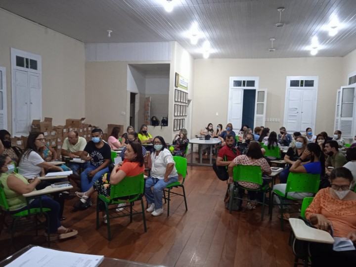 Na noite da última segunda-feira (21), foi realizada uma reunião na sede da Secretaria Municipal de Educação, onde estiveram presentes coordenadores escolares, pedagogos, diretores da rede municipal e equipe pedagógica da SEME.
