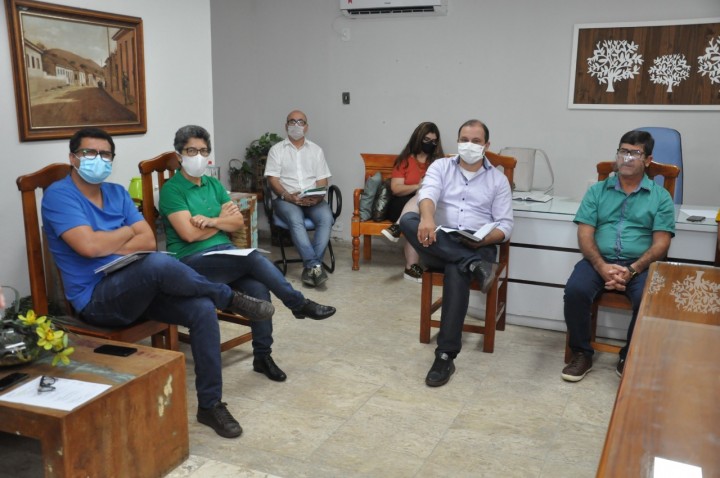 Além dos secretários, participaram da reunião, a 1ª dama, Karla Gonçalves Valentim, a procuradora geral do município, Danielle Leite Freitas, a controladora geral do município, July Silveira Heitor, e o diretor geral do SAAE, Renan Brasil.