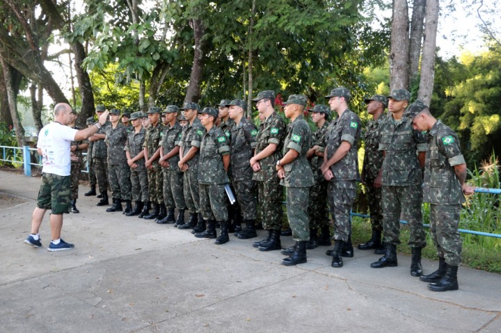 A Secretaria Municipal de Meio Ambiente (Semmam) e os atiradores do Tiro de Guerra 01-013 realizaram uma limpeza simbólica às margens do Rio Veado, em Guaçuí, na manhã desta quarta-feira (29). A iniciativa foi uma ação prática dentro de um dos temas abordados em palestra de educação ambiental ministrada para os 35 atiradores da instituição militar do município.