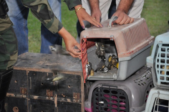 Foram soltos em Guaçuí 10 canários-da-terra, cinco Patativas, 47 coleiros-papa-capim, oito coleiros-baiana, um tiziu, três tico-ticos, dois sanhaços, oito trinca-ferros, um sabiá-laranjeira, um sabiá-poca, dois sabiás-barranco, cinco jandaias-estrela, um melro, um tiriba, duas maritacas e 11 papagaios-chauá, num total de 111 pássaros. Vale ressaltar que o papagaio-chauá encontra-se na lista de risco de extinção e vão ficar por 10 dias em um viveiro para se acostumarem com o ambiente e ganharem a liberdade naturalmente.