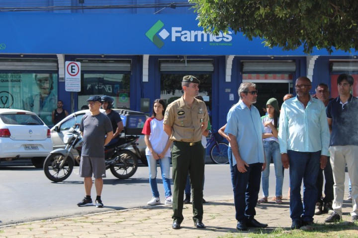 A Comendadora Maria Madalena Emery de Carvalho foi a honrosa responsável pelo hasteamento do Pavilhão Nacional, gesto solene que ecoou o respeito e a reverência à nossa bandeira. A cerimônia, contou também com a participação do Professor Weber Muller, que conduziu a leitura alusiva à bandeira do Brasil.